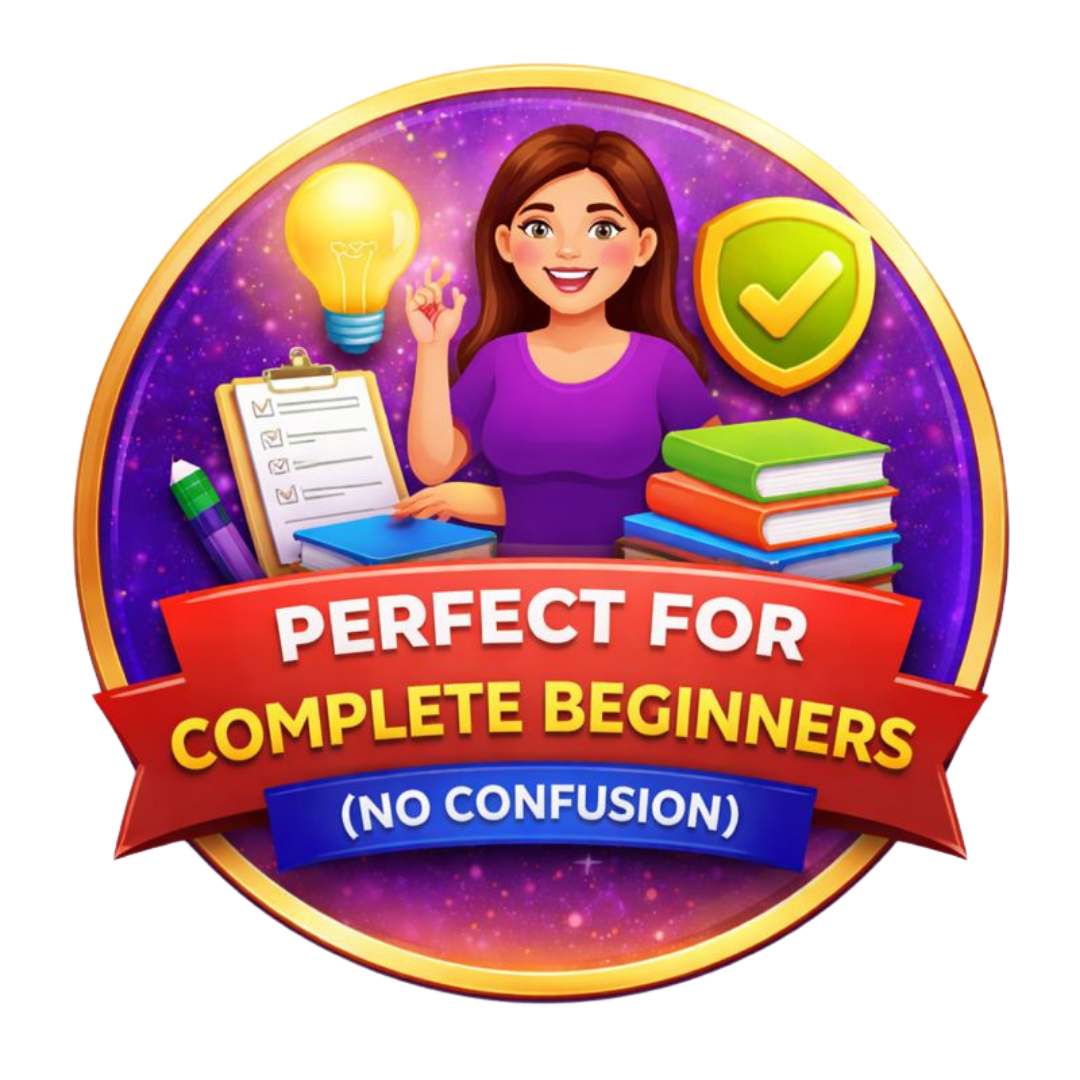 1. Designed specially for beginners with zero prior experience 2. Explained in simple, easy-to-understand language 3. No technical skills or complicated tools required 4. Step-by-step approach that removes guesswork