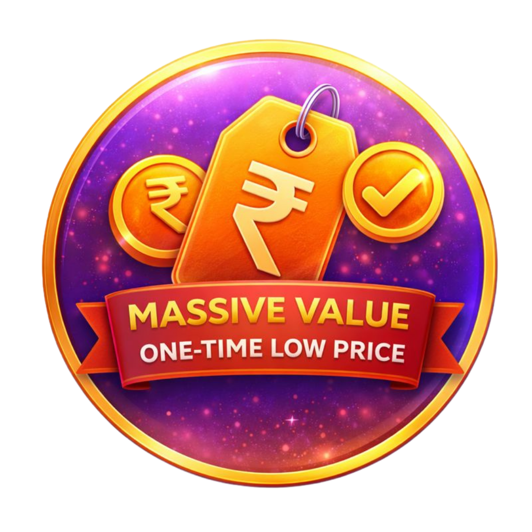 1. Main course + 8 powerful bonuses included 2. Total value worth ₹15,893 3.Regular price ₹2,999 4.Today only: ₹199 with lifetime access
